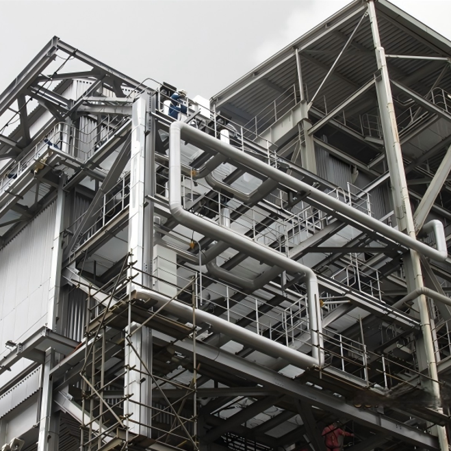开云电子自主研发的双混SCR烟气脱硝技术,通过气流的自适应整流效应,实现氨/烟气一级均匀混合,通过圆盘回旋混流耦合AIG氨喷射技术,实现氨/烟气二级混合更加均匀,通过优化SCR进出口烟道缓转弯技术,有效降低烟道压损与防止积灰。在负荷波动及烟气侧氮氧化物浓度波动情况下,确保高脱硝效率、低氨逃逸率。